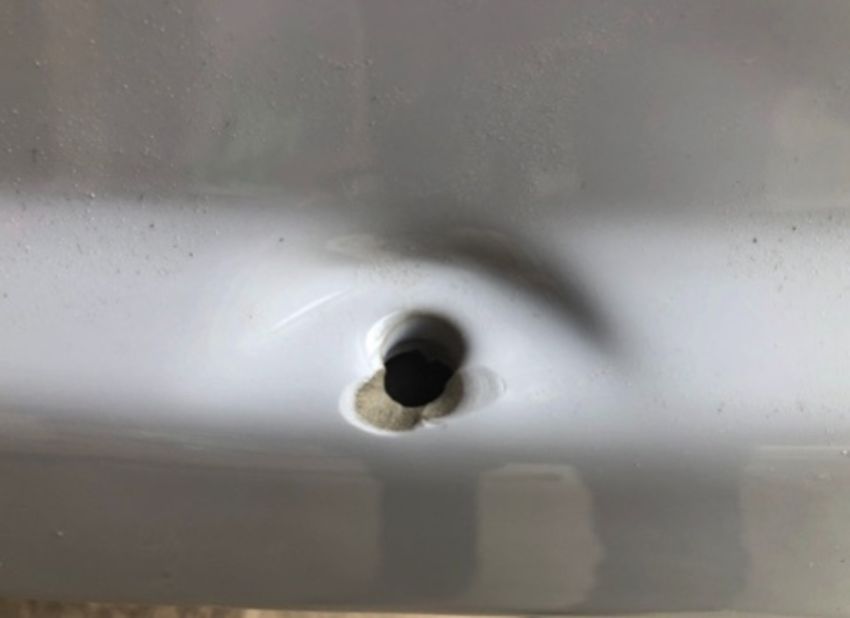 Slight mark/chip but the silver fixing covers it. Please see picture.
