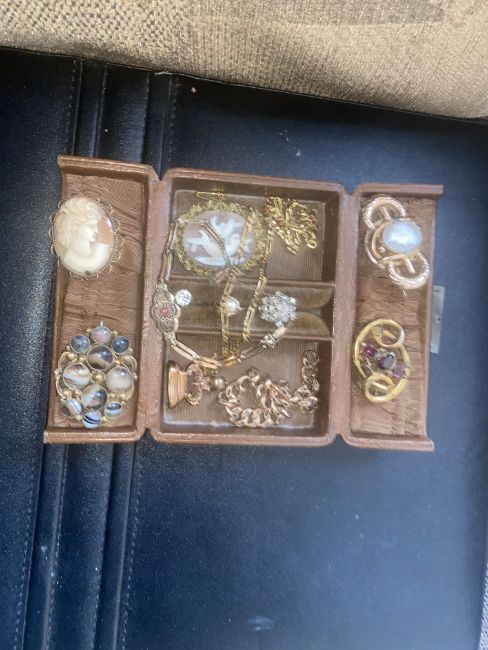 Antique jewellery box and contents.