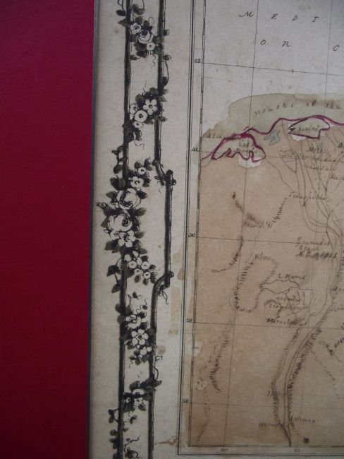 Two detailed hand drawn maps with intricate floral borders, both drawn by Jane Edwards and dated1860