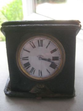 Vintage Green Leather Cased 8 Day Travel Clock.