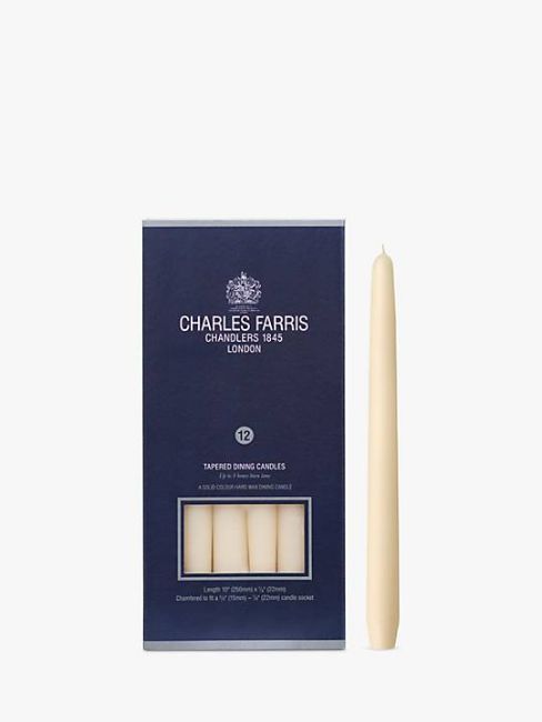 Charles Farris Tapered Dinner Candles, Pack of 12, White.