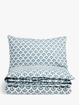 John Lewis Palmette Reversible King Duvet Cover Set, Lake Blue.