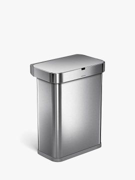 simplehuman Rectangular Sensor Bin with Voice Control, 58L, Silver.