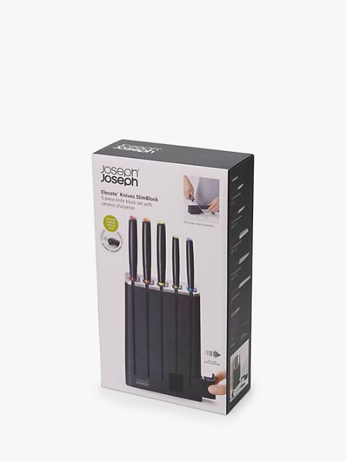 Joseph Joseph Elevate Filled Slim Knife Block & 5 Stainless Steel Knives with Sh.