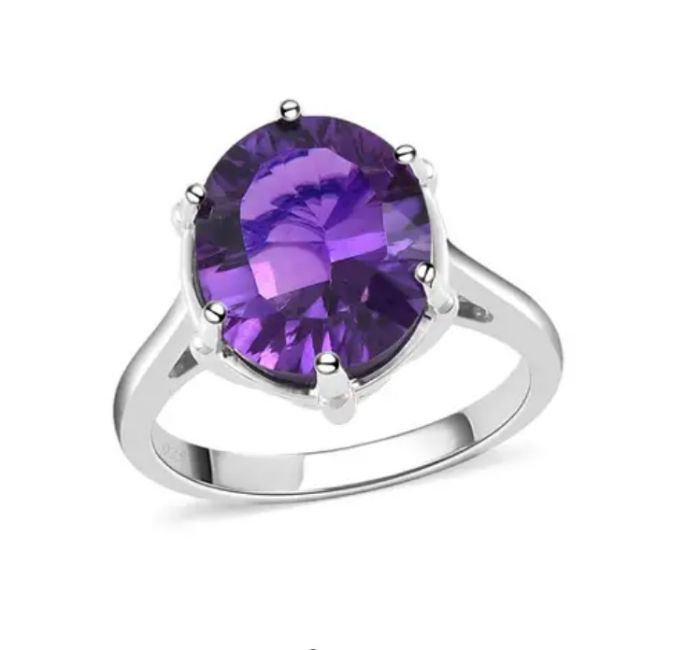 Supported by 6 prongs, the deep bluish-purple hues of amethyst bring enchantment to the onlookers.