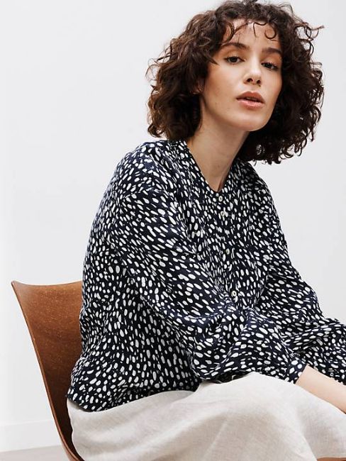 John Lewis Linen Abstract Print Tunic Dress, Navy, 12.