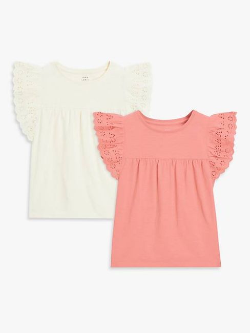 John Lewis Kids' Broderie Anglaise Cap Sleeve T-Shirts, Pack of 2, Beige/Blue, 2.