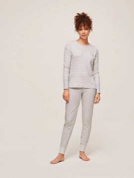 John Lewis Edie Striped Cotton Pyjama Set, Light Grey, 12.
