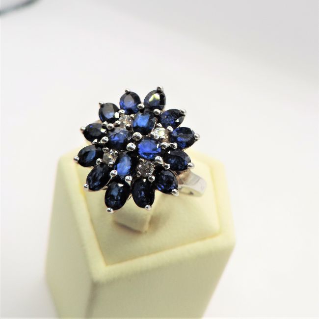 Title: Sterling Silver 20 Sapphire Gemstone Cluster Ring New With Gift Box