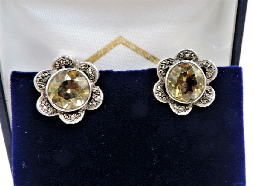 Each earring is set with a 10mm (3.3 TCW) Lemon Citrine and the earrings are 1.5cm wide