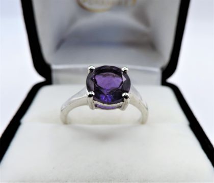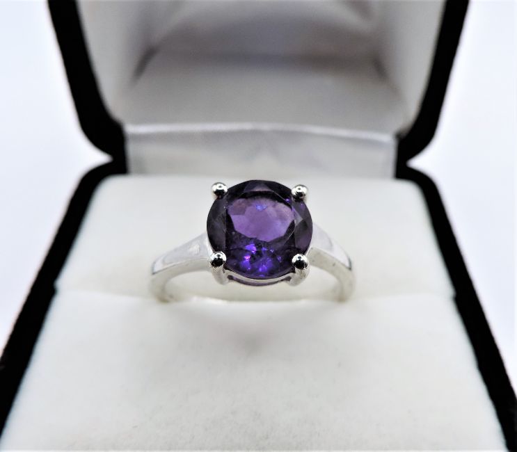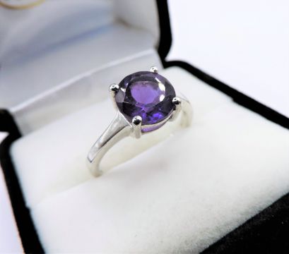 A superb sterling silver ring set with a solitaire Amethyst Ring 8mm  in size (1.8 carats).