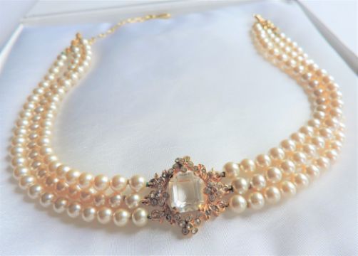Title: Princess Diana Inspired Triple Strand Pearl Necklace With Gift Pouch