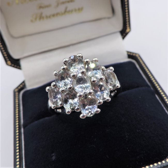 Title: Aquamarine Cluster Ring 2.25 Carats Sterling Silver New With Gift Pouch