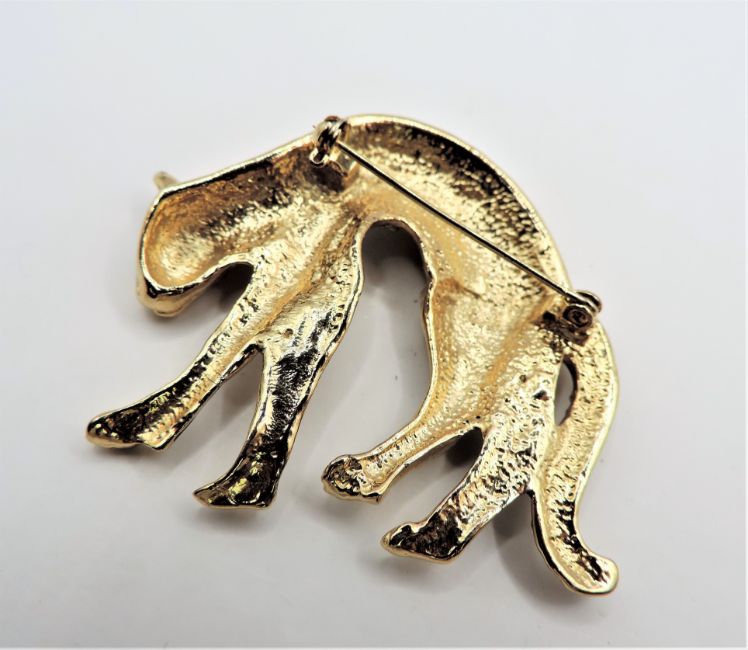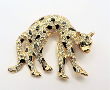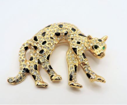 Title: Vintage Gold Plated Crystal Leopard Brooch