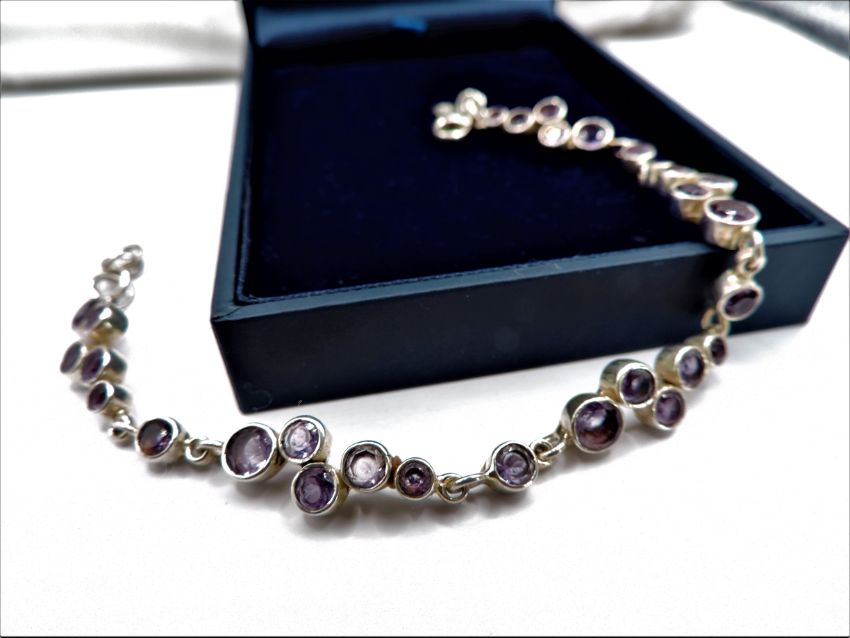 Bracelet is 8 inches long marked 925 with makers marks MJ.