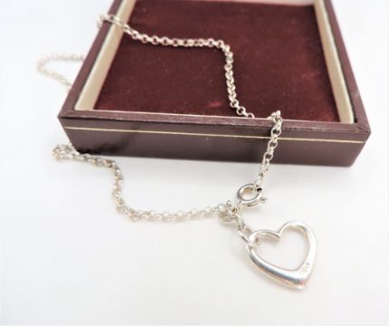 A fine quality Heart charm bracelet in sterling silver 23cm long in very good condition.