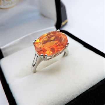 A stunning Orange Sapphire Solitaire ring set with a 4x10mm stone (tcw 6.0).