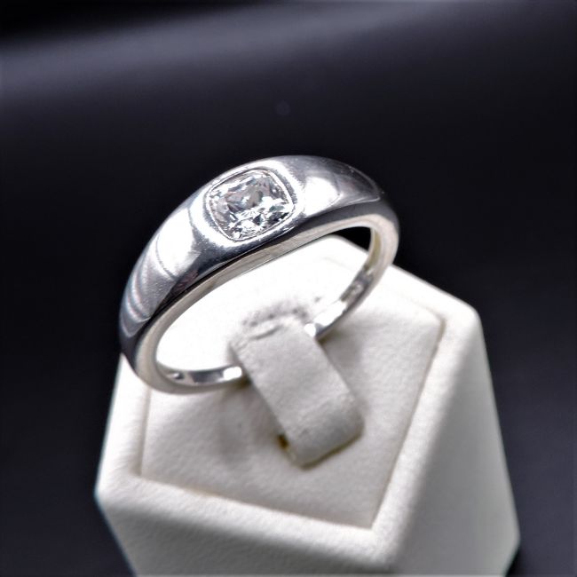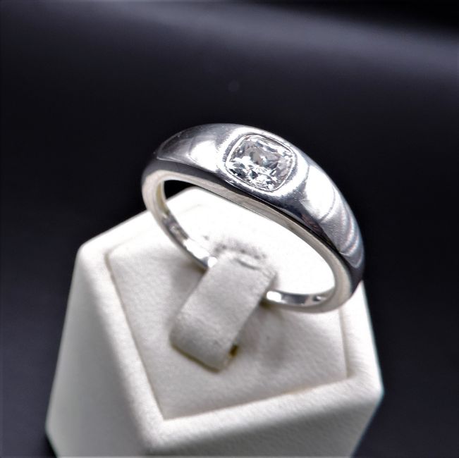 A fine quality ring in sterling silver set with a sparkling diamond like 5mm square White Zircon.