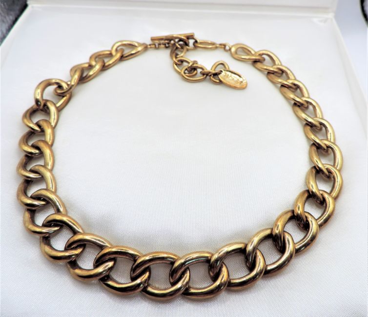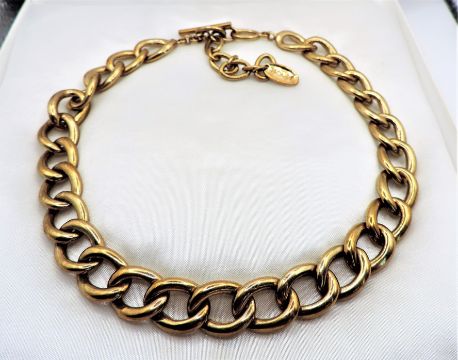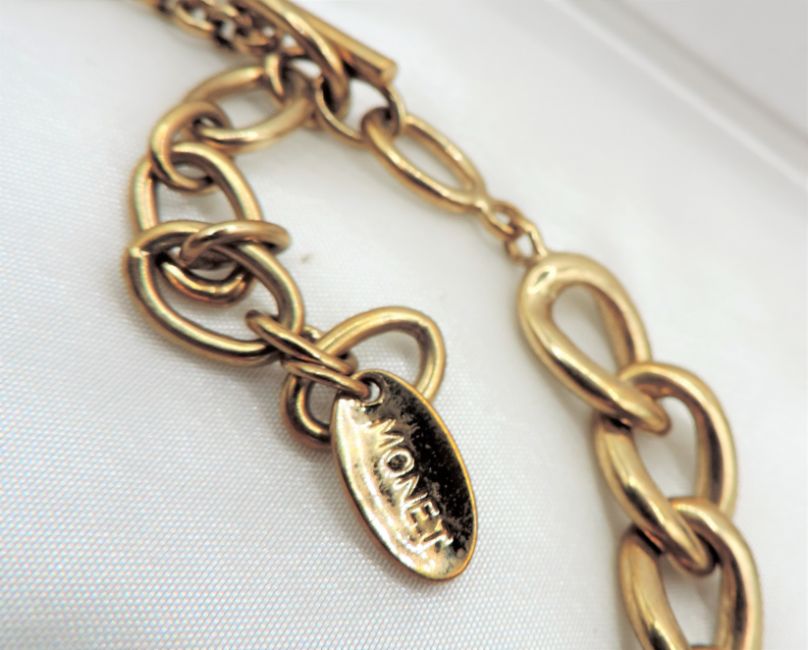 Title: Vintage Signed Monet Gold Plated Chunky Link Necklace c. 1980's
