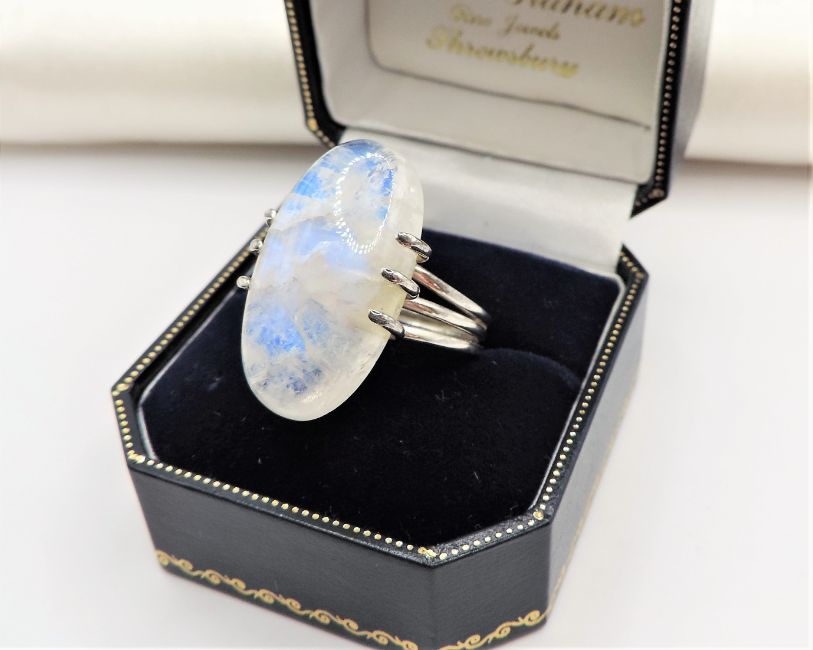 A fabulous sterling silver ring set with a 25x14mm Moonstone.