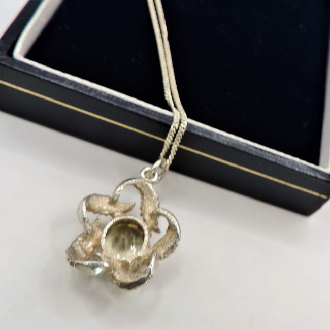Title: Vintage Artisan Sterling Silver Lemon Citrine Pendant Necklace c. 1970's