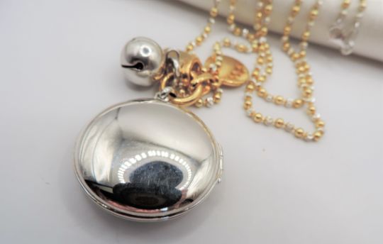Locket has a 30mm diameter and is on a 34 inch chain.