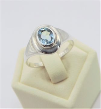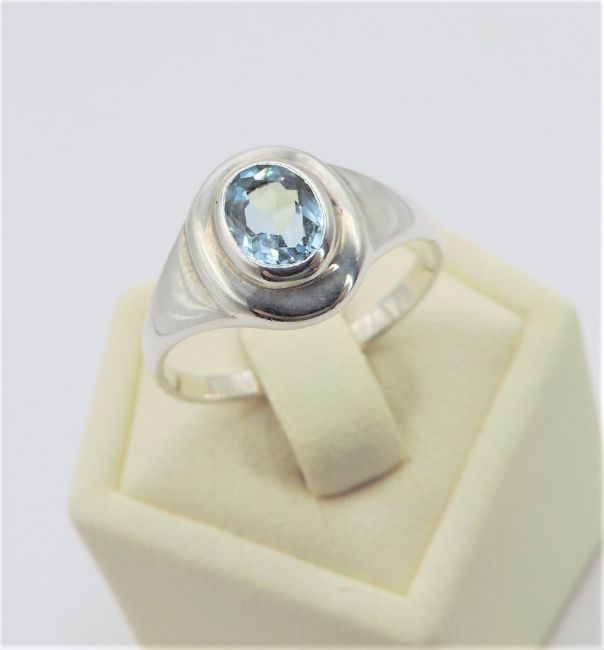 A lovely ring in sterling silver set with an oval 6x4mm Swiss blue Topaz gemstone (TCW 0.57).