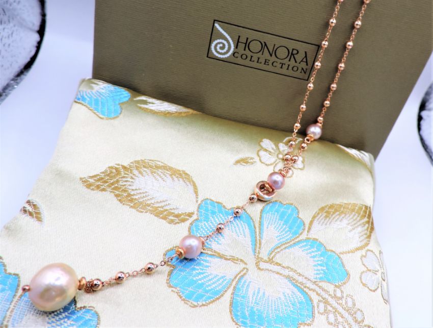 The chain is 22 inches long and the cultured freshwater pearls measure approximately 6.5mm and 11mm.