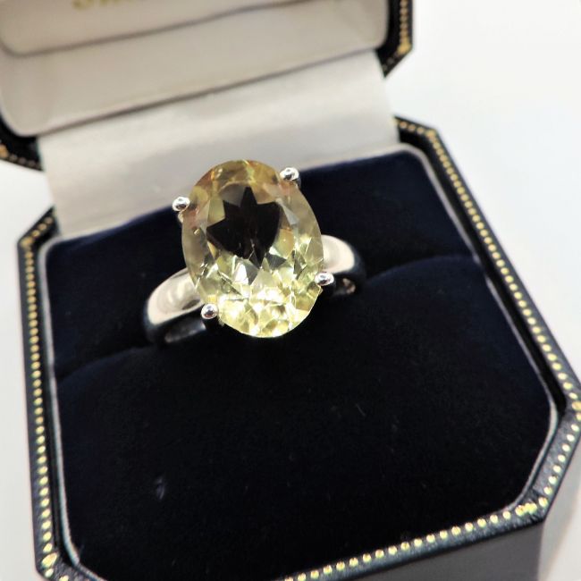 A stunning ring in sterling silver set with a 14x10 (tcw 6.0) Citrine  gemstone.