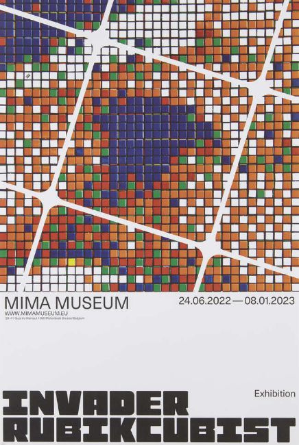 Created for the INVADER RUBIKCUBIST – Belgium Invasion 2022 at the MIMA Museum the 40x60cm poster captures a few individual pieces of this 2022 exhibition.