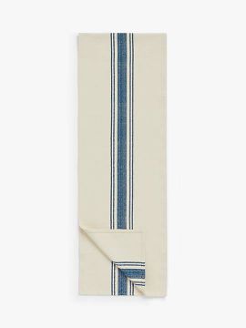 John Lewis Striped Cotton Table Runner, 250cm, Navy/Natural.