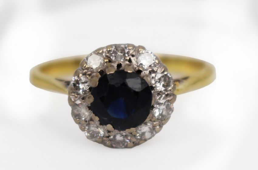 Title: Sapphire & Diamond Cluster Ring 18ct