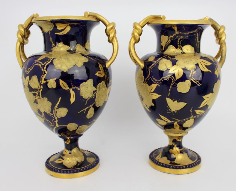 Title: Pair of Fine Cobalt Blue Davenport Gilded Vases c.1880
