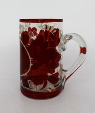 Red lustre design with hand pained flowers.