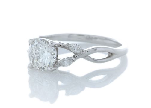 Title: 18ct White Gold Single Stone Diamond Ring With Marquise Set Shoulders (1.00) 1.16 Carats