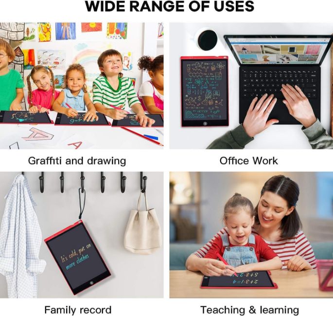 - Healthy & Eco-friendly: It is a healthy and eco-friendly drawing board, enabling your kids or family to keep away from chemical pigments and chalk dust as these harmful chemicals could irritate the skin and lungs. This LCD writing pad is paperless and reusable that can help you save resources