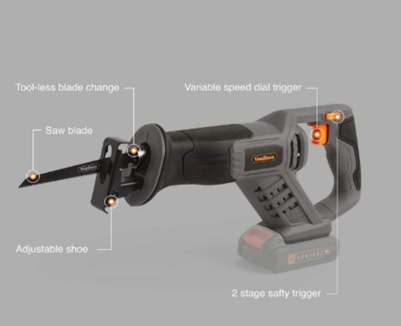 - Tool-Less Blade Change – includes 150mm wood blade, with a 22mm blade stroke length. Universally compatible with reciprocating saw blades with standard fitment