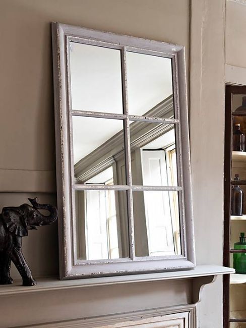 One.World Wilton Rectangular Wood Window Wall Mirror, 104 x 64cm, White.