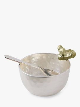 Culinary Concepts Queen Bee Hammered Metal Honey Pot & Spoon, Silver Plated.