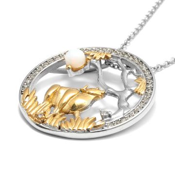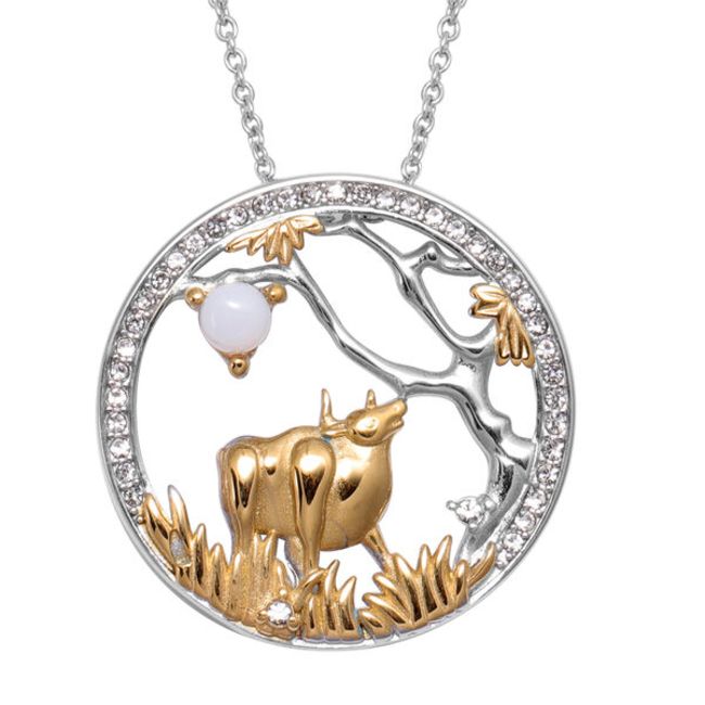 Title: NEW!! Opalite and White Austrian Crystal Ox Pendant with Chain