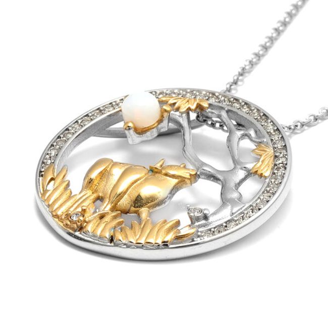 NEWOpalite and White Austrian Crystal Ox Pendant with Chain (Size 24) in Gold Tone and Plain Stainless Steel. Free postage.