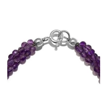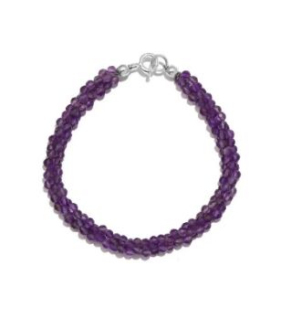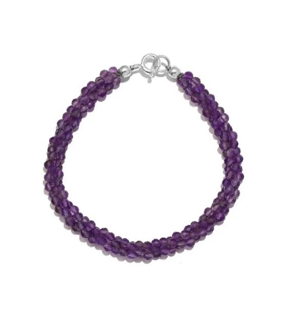 This amethyst bracelet offers a beautiful addition to your daily wear jewellery collection. The purple hues of this bracelet will charm your attire and subtly style your personality for each gathering. This bracelet is made with three elasticated strands, the amethyst pieces beaded. The intertwining of these strands creates a rope-like structure. This bracelet will allure your wrist with its apparent size and give you a classic look. The sterling silver-made lock fastens this bracelet. Get this amethyst bracelet for yourself, or gift it to someone you adore.