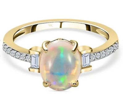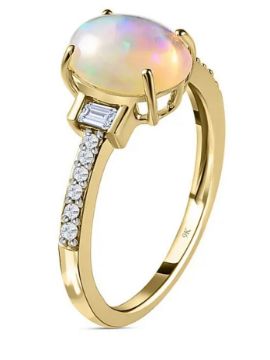 Dazzle your senses with the mesmerising beauty of this 9K Yellow Gold AA Ethiopian Welo Opal and Moissanite Ring (1.3 Carat).