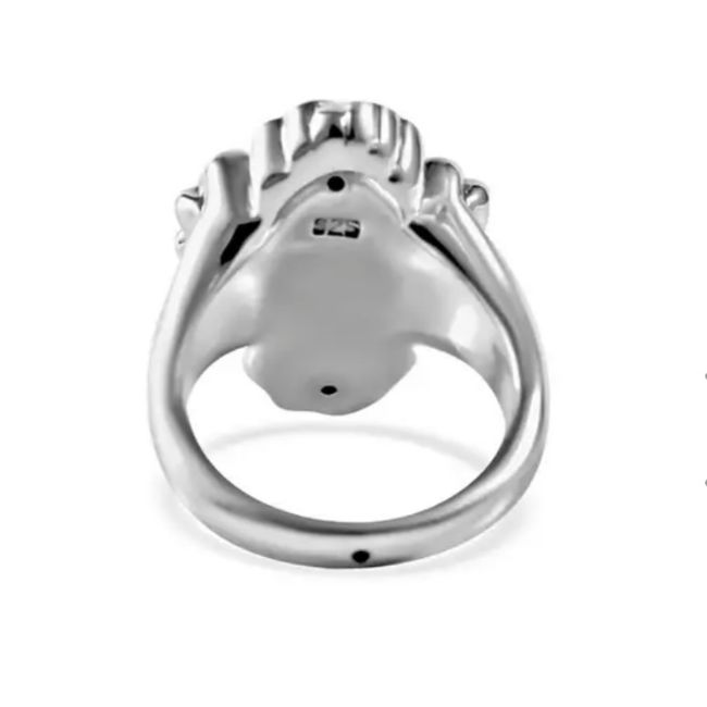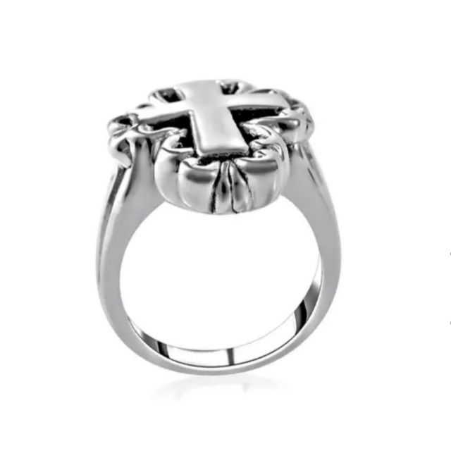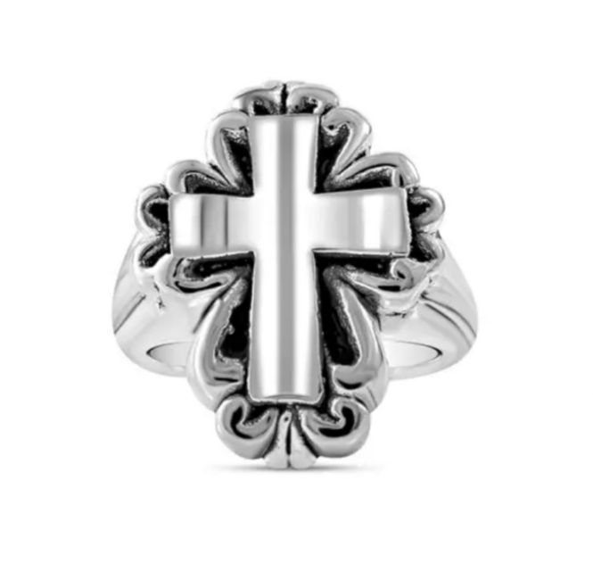 Boost your spiritual belief and create a statement at each gathering by alluring your finger with this sterling silver cross ring. This ring creates an eye-catching silhouette and makes a beautiful addition to your daily wear. Crafted using 925 sterling silver, this ring features a cross-shaped silver piece in the centre. The black textured flower-shaped silver work outlines the vertical and horizontal bar of the cross and completes the look of this unique ring. You can add this to your collection or gift it to someone special.