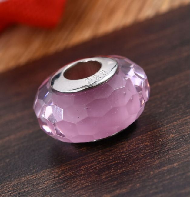 NEW!! Charmes De Memoire Light Pink Murano Style Glass Bead Bangle in Platinum Overlay Sterling Silver. Free postage.