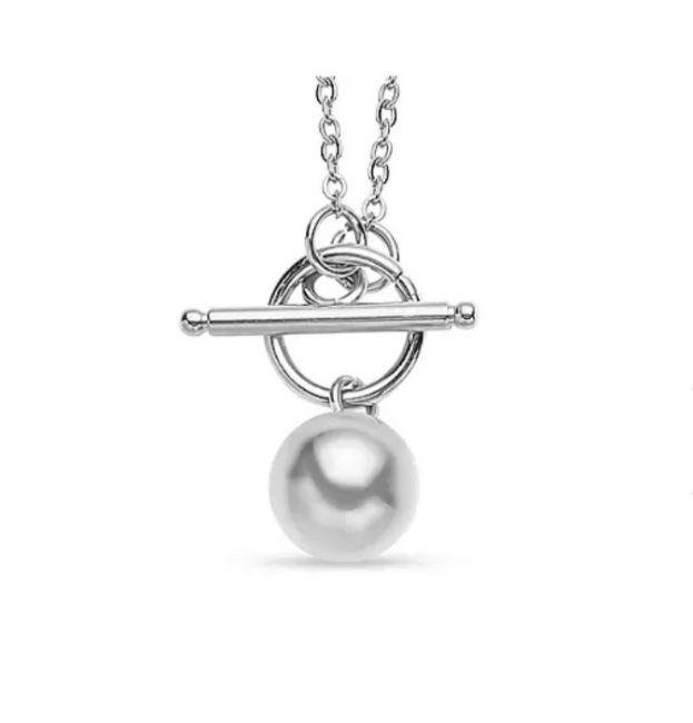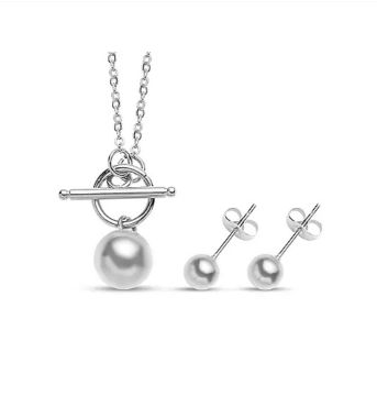 New! 2 Piece Set - Necklace (Size 20) with T-Bar Clasp and Ball Earrings in Stainless Steel.