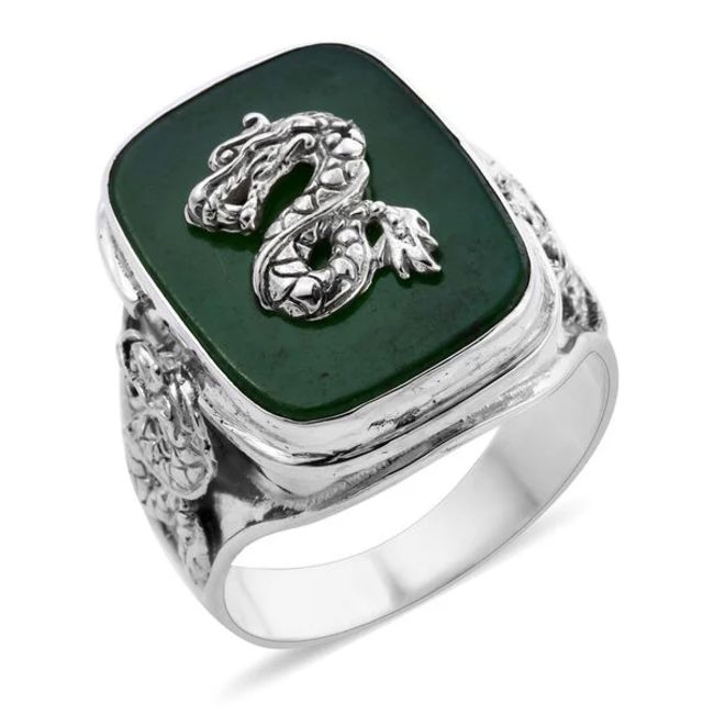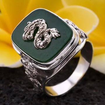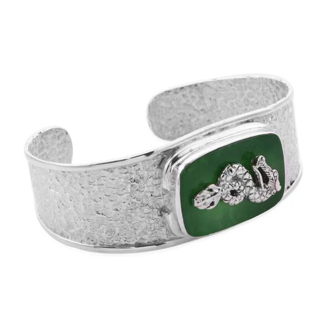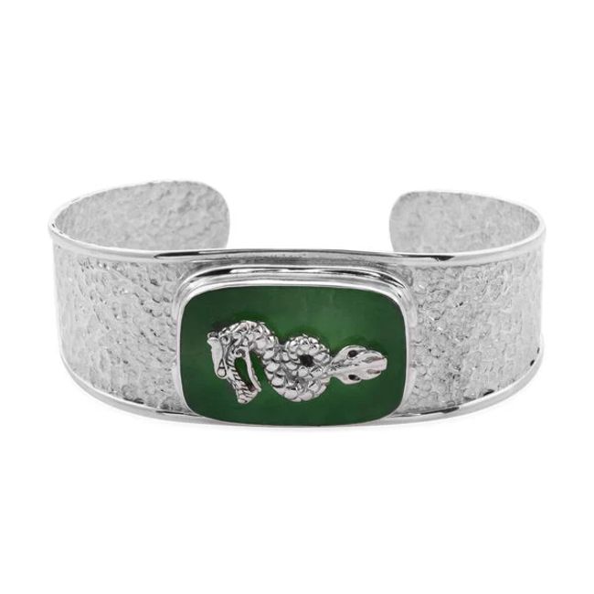NEW!! Royal Bali Collection Green Jade Dragon Cuff Bangle Size 7.5) in Sterling Silver 21.90 ct & Royal Bali Collection Green Jade Dragon Ring (Size N) in Sterling Silver 12.25 Ct. Free postage.
