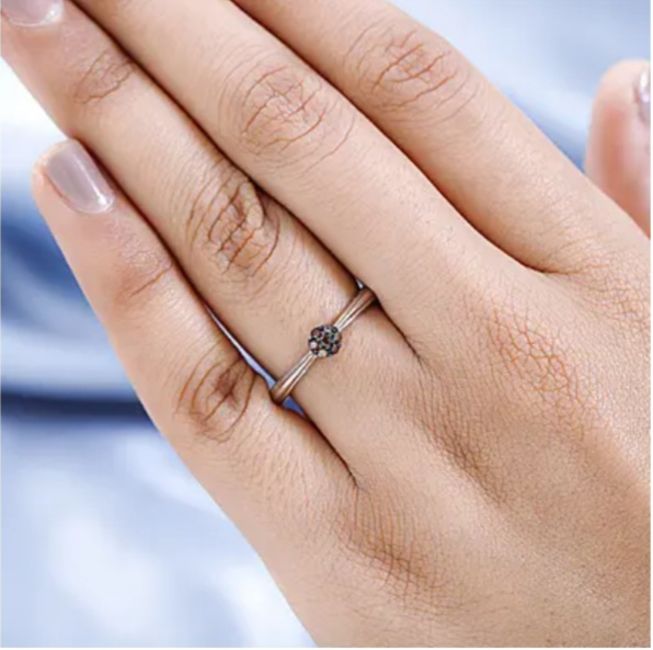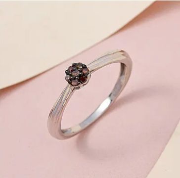 Step into the world of wonder and enchantment with this exquisite platinum overlay sterling silver ring adorned with seven red diamonds. The ring bears the stamp of skilled artistry even in its minimalist design. The red sapphires are placed in a floral design that is highlighted by the polished silver base. Platinum overlay enhances the experience of wearing silver jewellery.