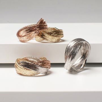 Title: NEW!! Maestro Collection - 9K Tricolour Gold Stretchable Mesh Ring