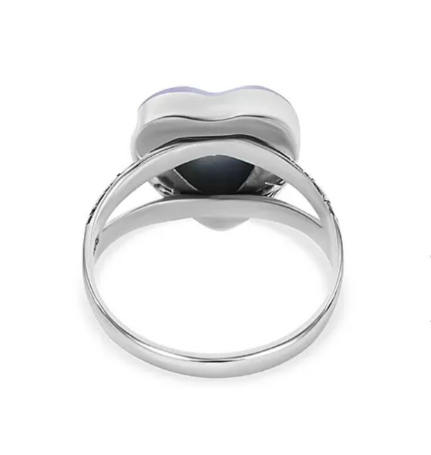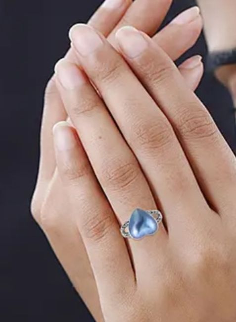 The centrepiece of the ring is a 14mm blue mabe pearl weighing 2.000 Carat.
